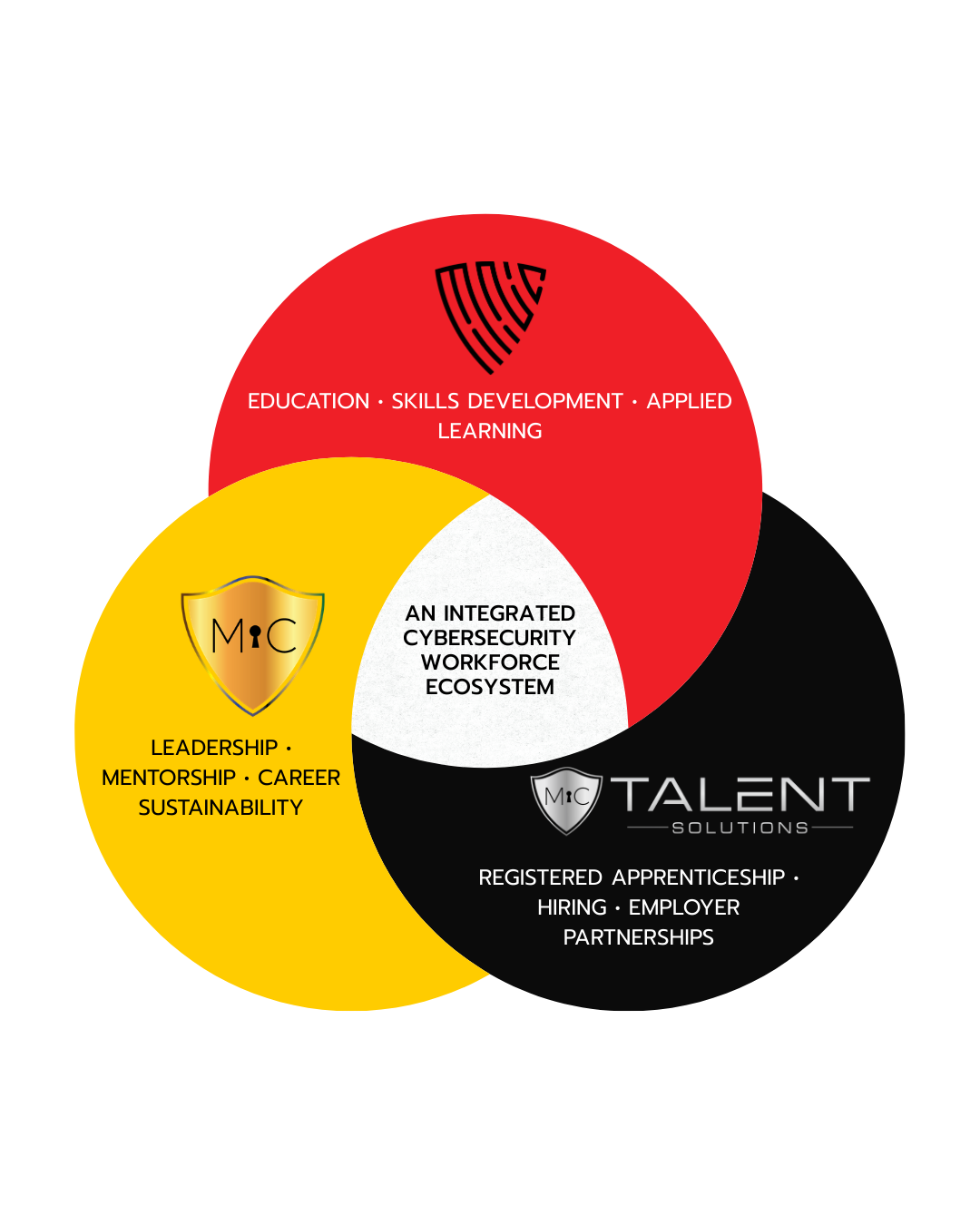 MiC provides leadership development and global community engagement. Education, apprenticeships, and employment opportunities are delivered through partner organizations within the MNC Cybersecurity Workforce Hub ecosystem.